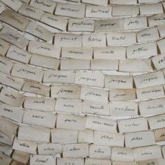 Dame aux dattes - Troisième millénaire après Jésus-Christ - Graines de dattes, fils poissés, cuivre -110 x 180 cm - 2015